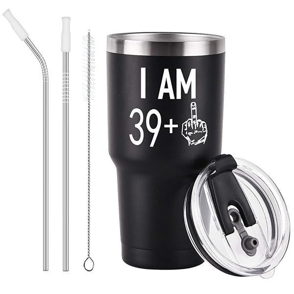 39 Plus One Middle Finger Birthday Mug Tumbler For Men Women Funny Turning 40 Years Old Bday Tumbler Gift Idea For Wife Friends Sister Coworker 30 Oz Stainless Steel Insulated Travel Tumbler