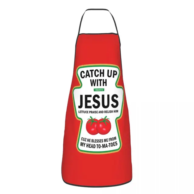 Lustige Christian Ketchup Wortspiel Lebensmittel Meme Bib Schurze Erwachsene Frauen Manner Chef Tablier Kuche Fur Kochen Kuche Fangen Up Mit Jesus Aliexpress